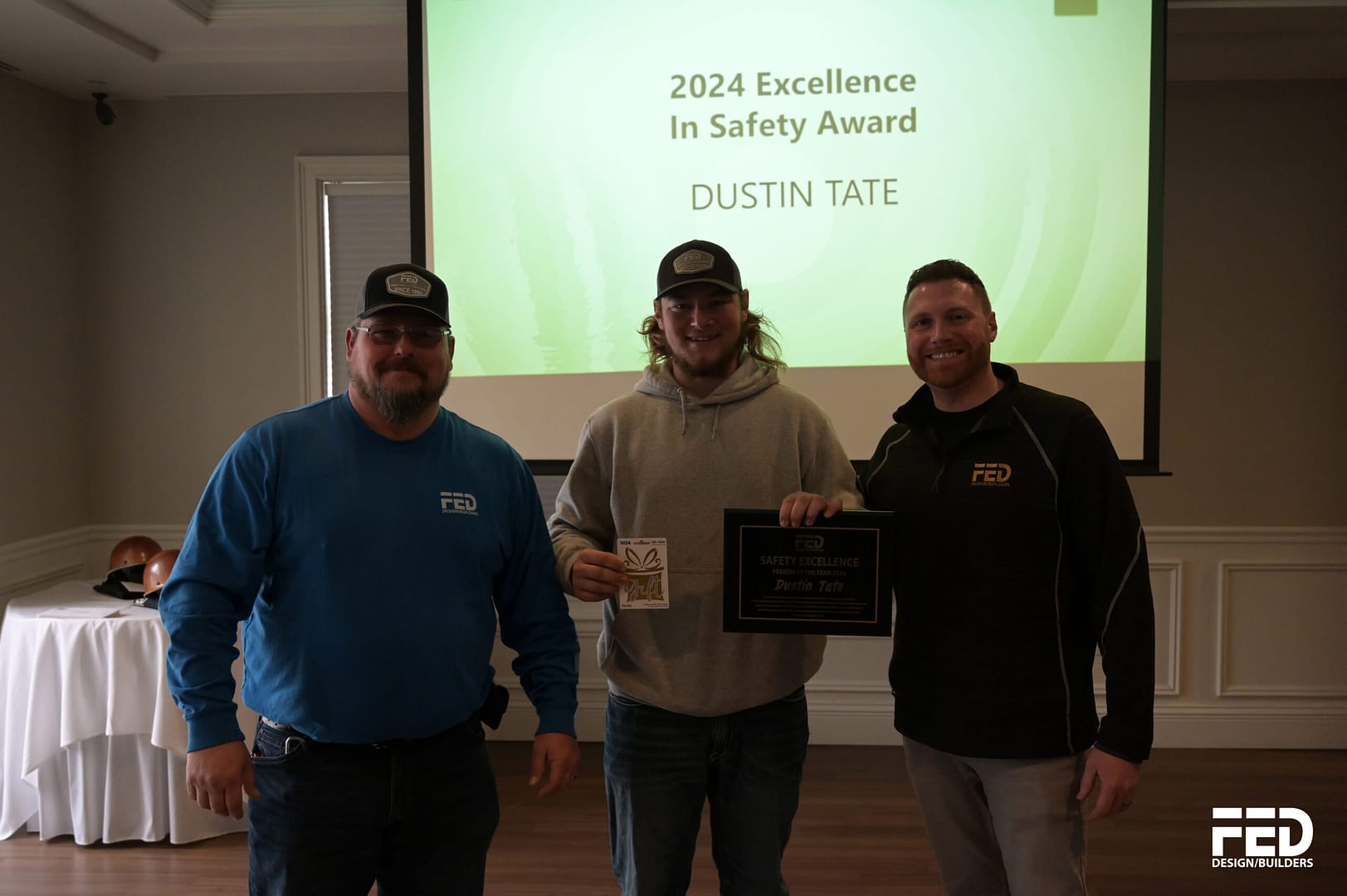 Next, each department head shared exciting updates on what’s ahead for the next quarter. A special moment of the meeting was when our Safety Director, Billy, presented Dustin Tate with the Safety Person of the Year award, a very deserving recipient!