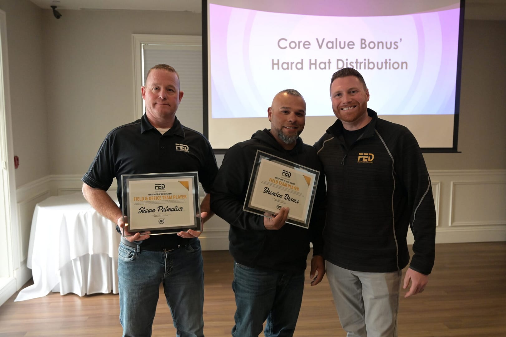 Honoring our focus in teamwork, Brock also revealed this quarter’s Team Player award winners: Bobby McKowen (Office), Shawn Palmateer (Office & Field), and Brandon Bruner (Field). Congrats to all!